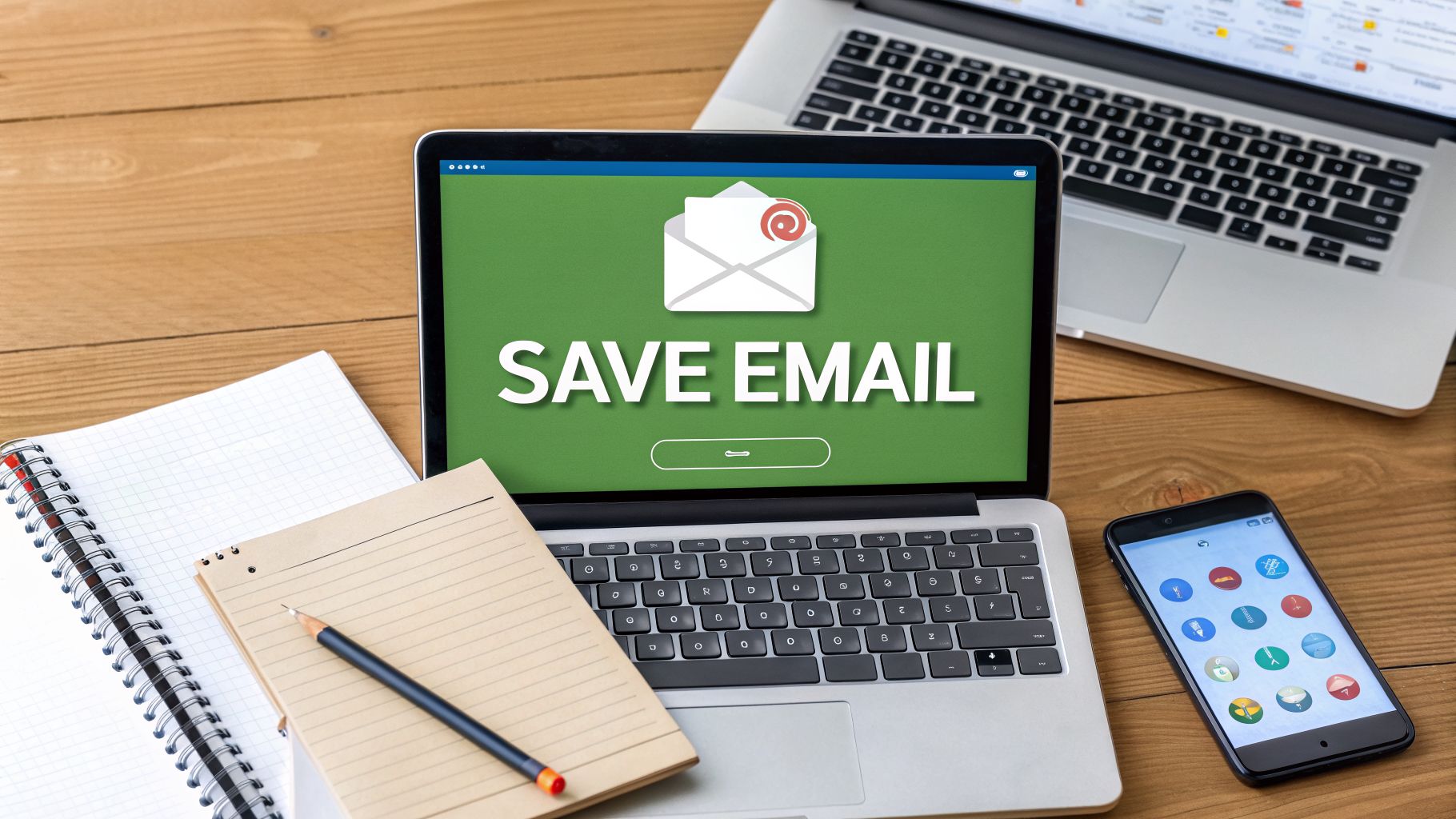 One of the most reliable and universally accepted ways to save an email is using the “Print to PDF” function. You’ll find this in pretty much every email client out there, from Outlook and Gmail to hosted platforms like Typewire. This creates a perfect snapshot of your email, freezing its layout and content into a non-editable file that anyone can open. It's my go-to for anything that needs to look exactly as it was sent—think invoices, legal notices, or signed agreements.